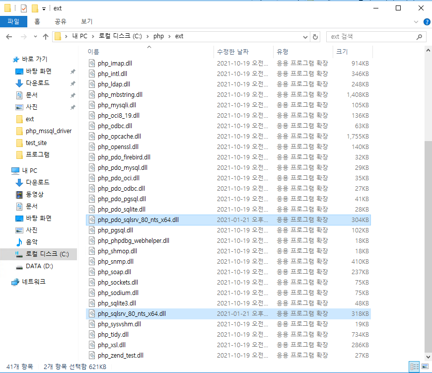 아래 선택된 파일을 복사해서 c:\php\ext 폴더에 넣습니다.