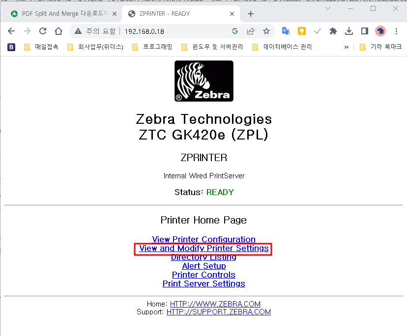 이제 잠시 후 변경한 192.168.0.18로 접속하면 프린트와 연결됩니다.