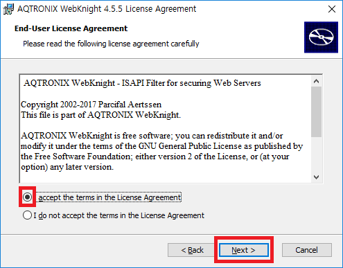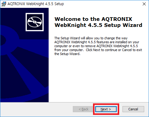 - 기본 설치를 하면 C:Program FilesAQTRONIX WebKnight 폴더에 WebKnight설치가 됩니다.