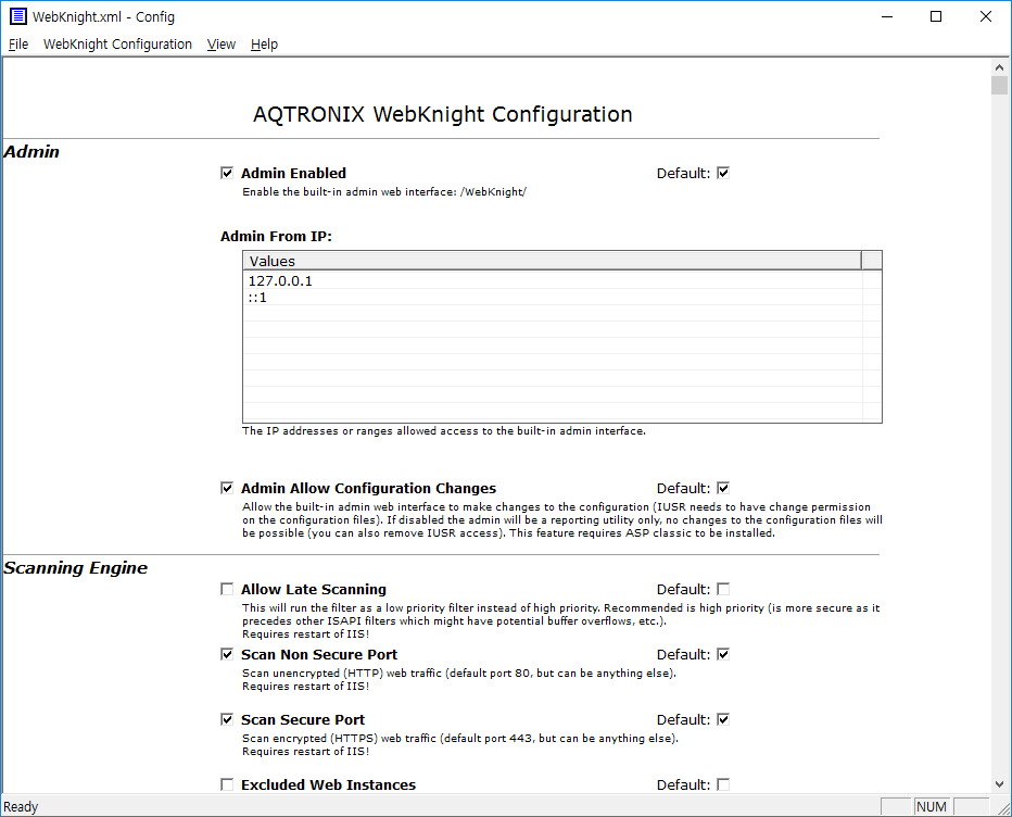 - Config.exe를 실행시켜 WebKnight.xml을 열어줍니다.