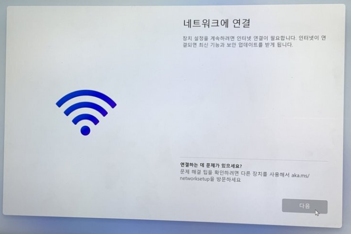 윈도우 11이 인터넷에 연결되지 않으면 설치를 진행할 수 없다.