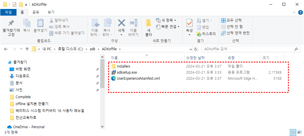 Windows ADK의 오프라인 설치 관리자를 빌드하는 방법에 대한 지침