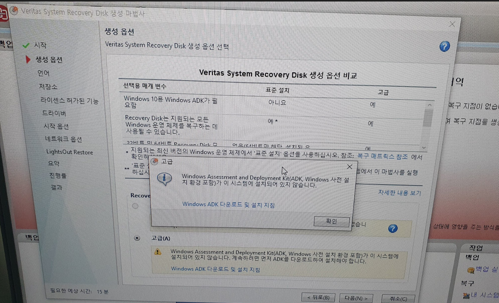 베리타스 이미지 백업 프로그램 설치 후 부팅 디스크 생성을 진행하는데....