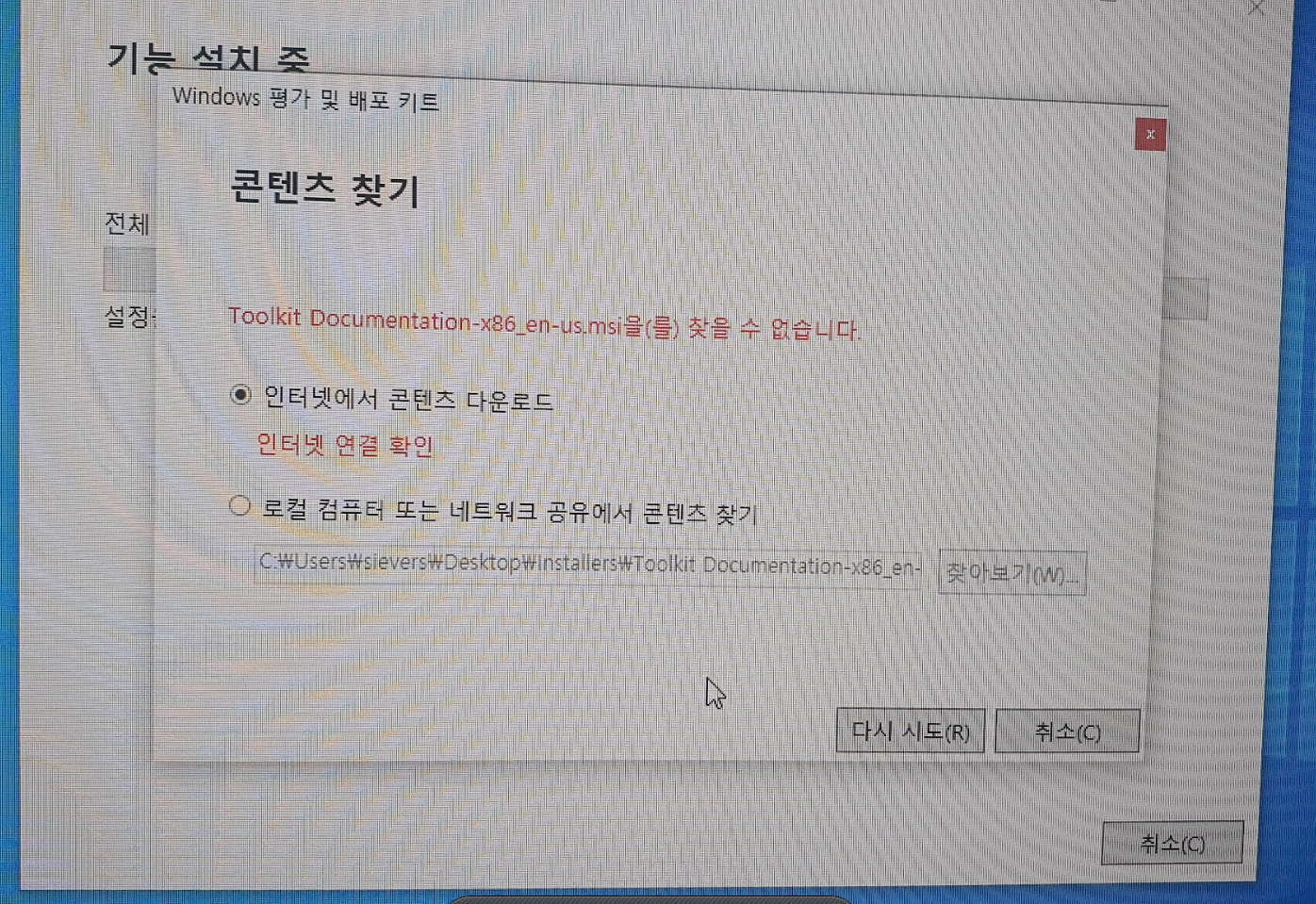 Windows ADK ??? 설치하라고..... 여기 오프라인인데....