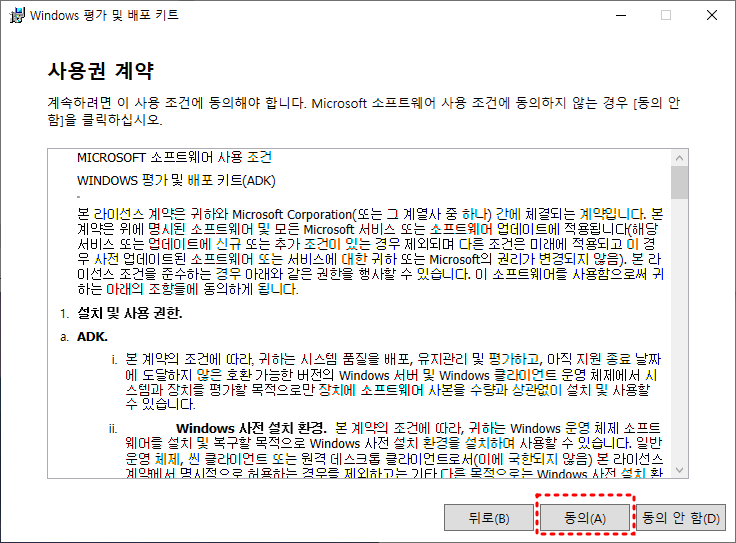 1) 일단 다운로드한 adksetup.exe 파일을 실행